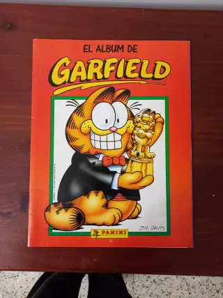 Álbum de cromos de Garfield, un clásico para coleccionistas. - Portada con Garfield vestido de etiqueta. - Ilustración de Jim Davis. - Logo de Panini.