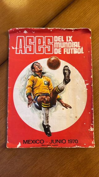 Álbum de cromos de Ases del IX Mundial de Fútbol celebrado en México en junio de 1970. Faltan 12 cromos. Están pegados en la parte superior.