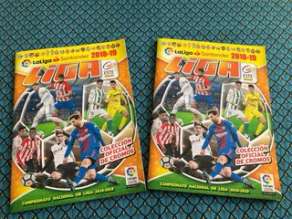 Se venden dos álbumes de cromos de LaLiga Santander 2018-2019. Uno está completo y el otro incompleto. - Álbum LaLiga Santander 2018-2019. - Incluye un álbum completo. - Incluye un álbum incompleto.
