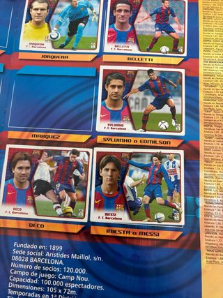Colección de cromos de jugadores emblemáticos del FC Barcelona de LaLiga. - Incluye cromos de Jorquera, Belletti, Sylvinho, Edmilson, Deco, Marquez, Messi e Iniesta. - Cromos de la temporada 1999-2000. - Estado: como nuevos, sin usar. Preguntar, precios individuales, se pueden vender recortados o el álbum entero.