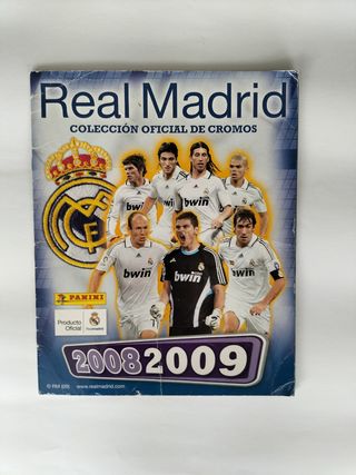 Álbum cromos oficial Real Madrid temporada 2008-2009. Está incompleto y las portadas algo deterioradas pero muy bien conservado en el interior.