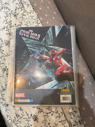 Álbum de cromos Capitán América: Civil War de Panini. - Incluye Trading Cards y Álbum del coleccionista. - Diseño inspirado en la película. - Portada con Capitán América y Iron Man. Esta entero no le falta ni un cromo