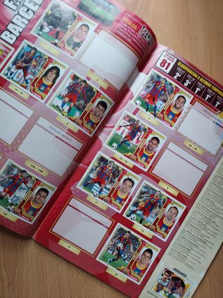 Álbum de cromos de la Liga BBVA 2011-12 de Panini, con aproximadamente un 30% de cromos pegados, pero como se aprecia en las fotos, no todos están perfectamente pegados