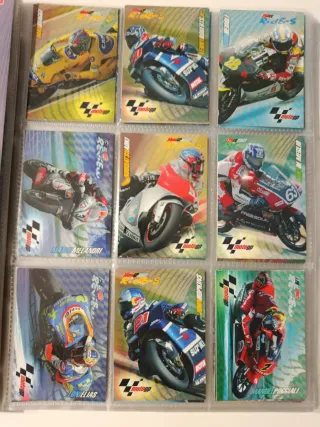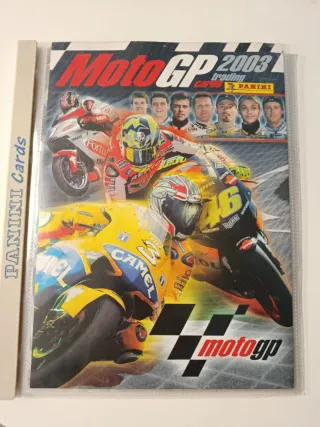 Álbum de cromos Panini de MotoGP del año 2003. Contiene cartas coleccionables de pilotos, motos y circuitos de la competición. - Muy buen estado - Incluye 42 cartas coleccionables - Precio negociable