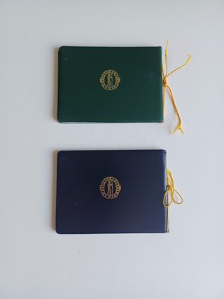 Álbum para coleccionar sellos en bloque de 4. - Cubierta de color verde. - Detalle de línea dorada. - Pequeño logo en la esquina superior izquierda, marca KABE. 30 páginas