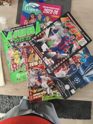 Se vende Pack de álbumes de cromos de fútbol de Panini. No se venden por separado. - Álbum Liga F 2023-24 plancha - Álbum Liga 2022-23 pocos cromos - Álbum Liga 2015-16 plancha - Álbum Liga 2016-17 pocos cromos - Álbum Champions League 2015/16 pocos cromos