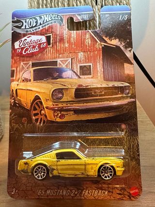 Coche de juguete Hot Wheels '65 Mustang 2+2 Fastback de la serie Silver. - Escala 1:64 - Modelo: '65 Mustang 2+2 Fastback. - Serie: Silver Series. - Colección: Vintage Club 1968.
