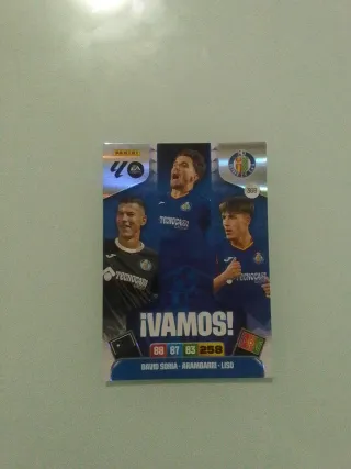 Coleccionable de LaLiga de la marca Panini, edición 2022-23, del equipo Getafe CF. - Incluye a los jugadores David Soria, Arambarri y Liso. - Diseño con el lema ¡Vamos!. - Número de cromo: 368.
