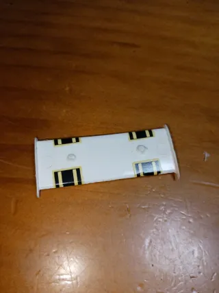Alerón de repuesto para el modelo Chaparral GT de Scalextric. Pieza de plástico blanco con detalles en negro y dorado. Faltan los palos según se ve en las fotos Se puede montar cómo en las fotos - Diseño deportivo. - Compatible con Scalextric Chaparral GT.