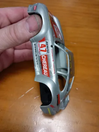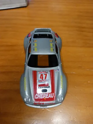 Carroceria y chasis de un modelo Scalextric Porsche 911. - Diseño plateado con detalles de competición. - Incluye dorsal '47' y patrocinadores.