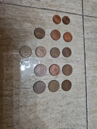Conjunto de monedas de céntimos de euro. - Monedas de diferentes valores. - Diseños variados en el reverso.