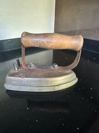 Plancha de hierro antigua con mango de madera. - Base de hierro. - Mango de madera desgastado. Solo envio por impost