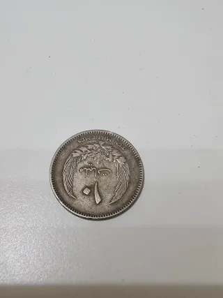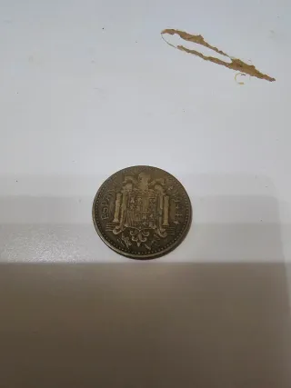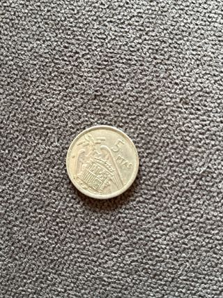 Moneda de 5 pesetas. - Diseño con escudo y águila. - Inscripción PTAS visible.