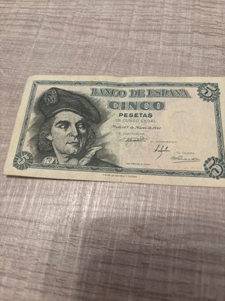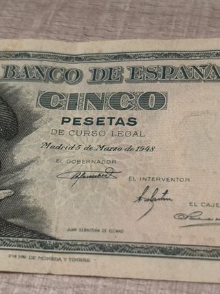 Billete de 5 pesetas del Banco de España con fecha de 5 de marzo de 1948. - Banco de España - Cinco Pesetas - Madrid 5 de Marzo de 1948