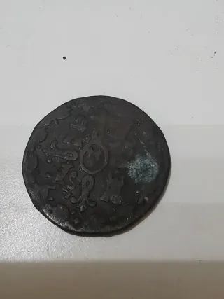 Moneda española de 8 maravedíes del año 1826. - Diseño con águila bicéfala. - Canto con inscripción.