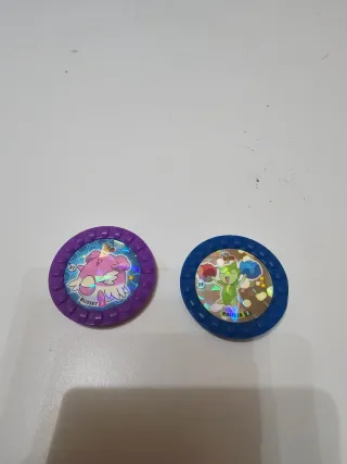 Dos Tazo Roks de Pokémon del año 2001. Uno es de Blissy y el otro de Roselia. - Tazo de Blissy (número 31). - Tazo de Roselia (número 25).