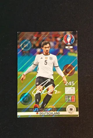 Tarjeta de colección del futbolista Mats Hummels, representando a la selección de Alemania. - Número de jugador: 5 - Puntuación: 84 - Puntuación adicional: 86 - Total: 245 - Habilidad: 73