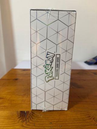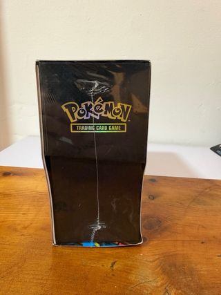 Caja de colección de cartas Pokémon TCG. - Diseño con patrón geométrico. - Ilustración central de Pokémon. - Incluye el logo de Pokémon TCG.