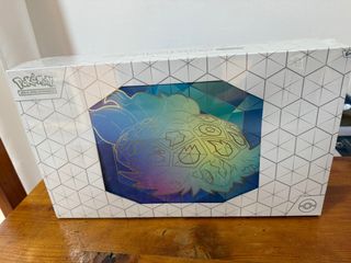 Colección premium de Pokémon TCG con temática de Zacian Sellado. - Incluye 10 sobres de cartas. - Contiene una figura de Zacian. - Incluye una carta de Zacian V. - Diseño de la caja con coronas doradas y azules.