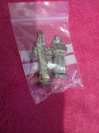 Conjunto de dos figurillas religiosas antiguas, ideales para llevar en el bolsillo. - Material metálico. Acero inoxidable - Diseño detallado.