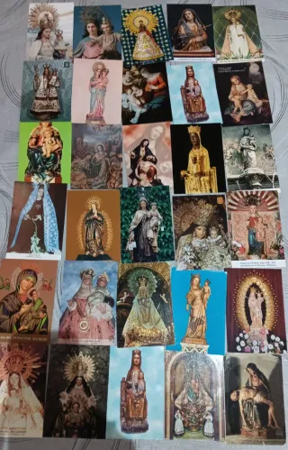 Lote de 30 postales con diferentes representaciones de Vírgenes. - Variedad de imágenes religiosas. - Ideal para coleccionistas.