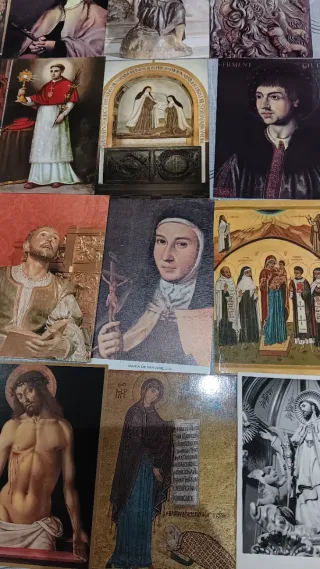 Lote de 32 postales con imágenes religiosas. - Variedad de escenas y figuras religiosas. - Ideal para coleccionistas o devoción.