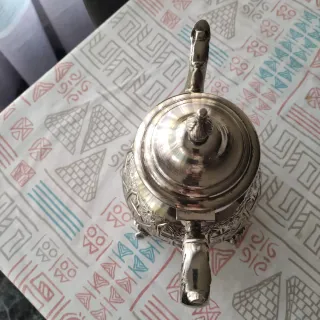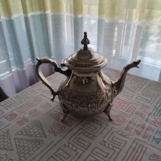 Elegante tetera de latón con un diseño intrincado. Tamaño grande, 750-1000 ml aprox - Material: Latón. - Diseño grabado. - Patas decorativas.