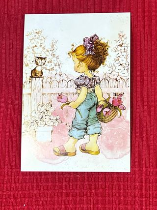 ‼️NUEVA‼️Perfecta para coleccionistas 15 x 10 cms 🌹Tengo 10 postales diferentes 🌹 1 Ud -1€ 🌹 4 Uds- 4€ 🌹 10 Uds - 7 De mi colección de artículos de diseños de Sarah Kay Preciosa ilustración vintage de una niña con un gatito y un cesto de flores. - Estilo de dibujo tierno y detallado. - Colores pastel suaves. - Motivos florales en el fondo. ‼️NO NEGOCIABLE ‼️ 🔹ENTREGO EN MANO 🤝EN ALGETE Y HAGO ENVÍOS POR WALLAPOP