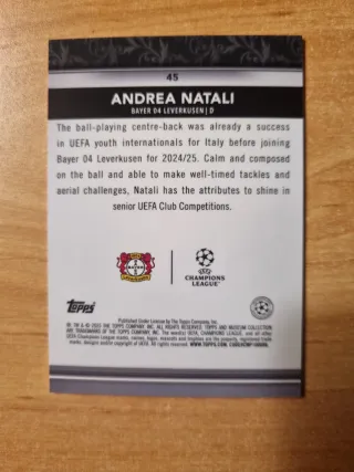 Tarjeta de colección de Andrea Natali. - Modelo: RC Topps Museum. - Jugador: Andrea Natali. - Equipo: Bayer 04 Leverkusen.
