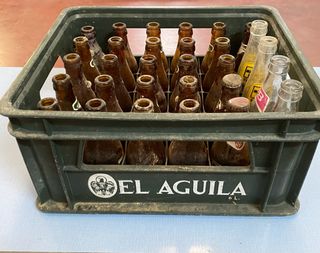 Antigua caja Cerveza El Águila con botellines