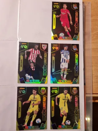 Lote de 5 cartas de la colección Panini Adrenalyn XL, edición limitada. - Incluye cartas de jugadores como Oyarzabal, Williams y Ayoze. - Cartas con diseño brillante y detalles de alta calidad.