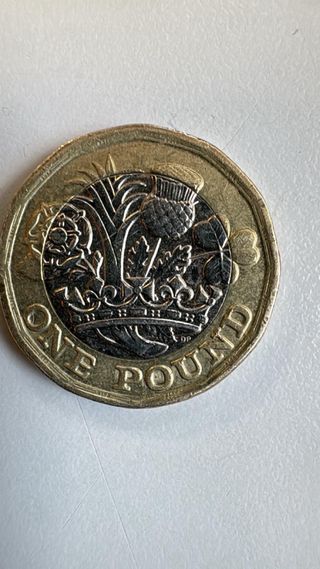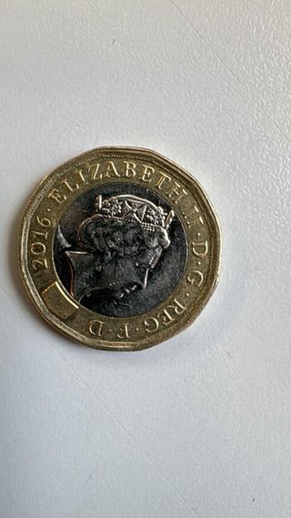 Moneda de una libra británica del año 2016. - Reverso con el retrato de la Reina Isabel II. - Inscripción ELIZABETH II D G REG FD y 2016.