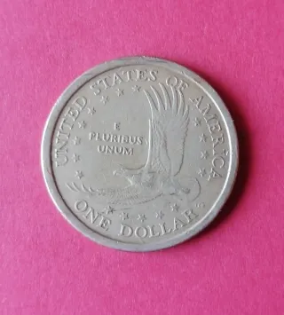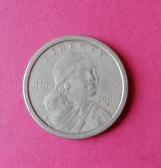 Moneda conmemorativa de Estados Unidos de América 1 dólar del año 2001. - Diseño de Sacagawea con su bebé. - Inscripción Liberty y In God We Trust. - Canto con 2001 y la marca de ceca P. No se hacen envíos solo en Murcia y en mano