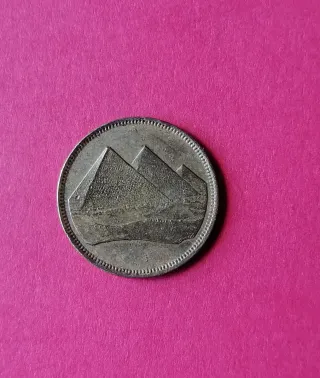 Moneda conmemorativa de Egipto, con un diseño grabado de las pirámides. - Diseño de las pirámides de Egipto. - Borde con detalles. - Material metálico. No se hacen envíos solo en Murcia y en mano