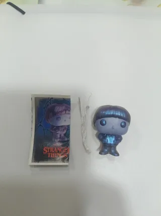 Figura Funko Pop de Will Byers de la serie Stranger Things. - Diseño inspirado en el personaje. - Acabado metálico iridiscente. Figura de Kinder sorpresa