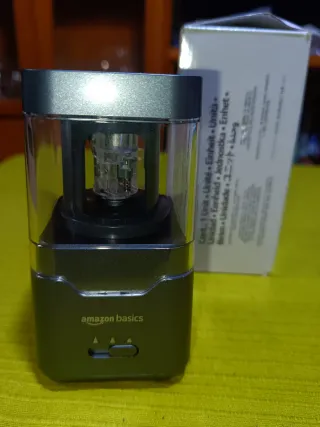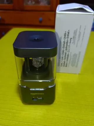 Sacapuntas eléctrico de la marca Amazon Basics. Diseñado para un afilado eficiente , Color gris y transparente , selector de puntas , se vende en tan solo 5 euros