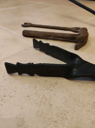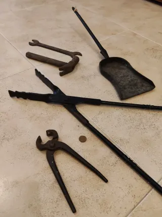 Lote herramientas de forja antigua, ideal para coleccionistas. - Tenazas y otros utensilios antiguos. - Material forja. - Ideal decoración.