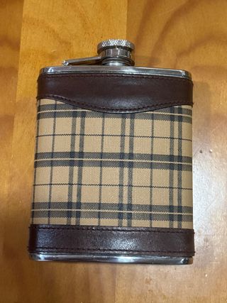 Petaca con un elegante diseño de cuadros y detalles en cuero. - Material exterior: Cuero. - Diseño: Cuadros.