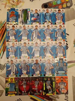 Lote de cromos Adrenalyn XL 25 26 de la Real Sociedad Escudo, Stadium card (Anoeta) y 17 cromos básicos de la plantilla 1 VAMOS! Remiro - Gorrotxategi - Oyarzabal 1 Guantes de Oro Remiro 2 Protas Carlos Soler y Gorrotxategi 1 Super Crack Kubo 1 New Master Caleta-car Cromos nuevos recién sacados de los sobres Se hacen envíos Panini liga este liga F hipermotion supercrack megacrack MGK Serie A guantes de oro balón de oro excellent vamos kriptonita diamante edición limitada momentum mitos míticos Real Madrid FC Barcelona Atletico de Madrid Athletic club de Bilbao card atómica invencible champions básica Protas cromo cromos carta