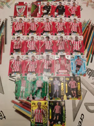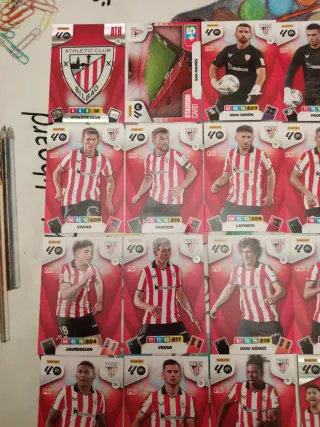 Lote de cromos Adrenalyn XL 25 26 del Athletic club de Bilbao Escudo, Stadium card (San Mamés) y 17 cromos básicos de la plantilla 1 carta VAMOS Laporte - Jauregizar - Williams 2 cartas kriptonita Laporte y Vivian 1 carta Diamante Rego 2 cartas super crack Unai Simón y Jauregizar Cromos nuevos recién sacados de los sobres Se hacen envíos Panini liga este liga F hipermotion megacrack MGK guantes de oro balón de oro excellent edición limitada momentum mitos míticos Real Madrid FC Barcelona Atletico de Madrid card atómica invencible champions básica Protas cromo cromos cartas hits lata box Serie oro platinium sobre oro premium