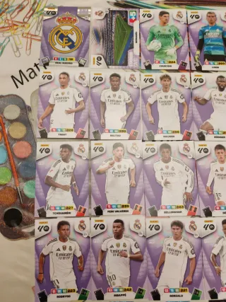 Lote de cromos de Adrenalyn XL 25 26 del Real Madrid Escudo, Stadium card y 17 cromos básicos de la plantilla 1 VAMOS! Huijsen - Güler - Mbappé 1 Kriptonita Militao 2 Diamante Fran González y Gonzalo 1 Protas Tchouaméni 4 Super Crack Courtois, Carreras, Fede Valverde y Mastantuono 2 New Master Trent y Mastantuono Cromos nuevos recién sacados de los sobres Se hacen envíos Panini liga este liga F hipermotion supercrack megacrack MGK guantes de oro balón de oro excellent edición limitada momentum mitos míticos Card atómicas champions invencible FC Barcelona Atletico