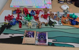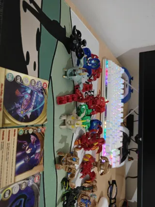 Lote de 23 Bakugan. - Incluye varias figuras de diferentes colores y diseños. - Se incluyen también las cartas de habilidades que tengo.