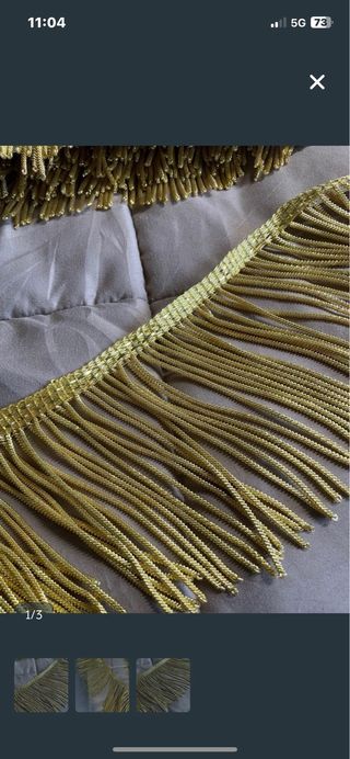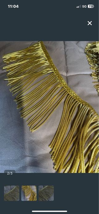 Fleco de canutillo oro 10cm de ancho + 1cm de pie El precio es por metros Dispongo actualmente de 2 metros