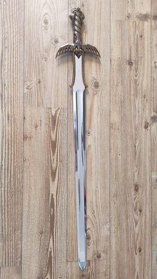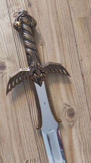 Espada decorativa de colección, modelo Bárbaro. - Fabricada por Espadería Marto de Toledo. - Longitud total de 116 cm. - Aparece en la película el corazón del guerrero. - Diseño con detalles de dragones y acabado en bronce. Entrega en mano. No hago envío.