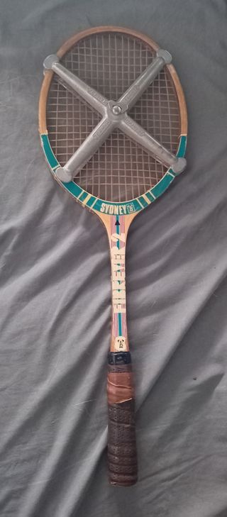 Raqueta de tenis vintage de la marca Sydney, modelo Fibrever2. Cruceta tensora para que no se deforme. Totalmente recta y funcional.
