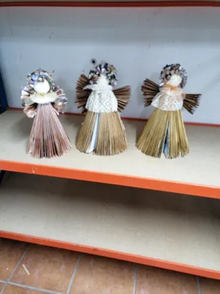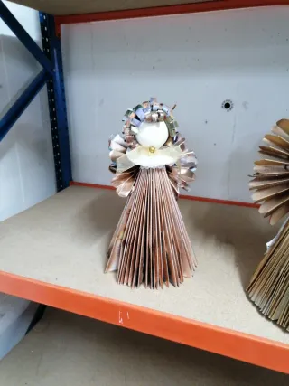 Preciosos ángeles decorativos, perfectos para dar un toque especial a tu hogar. - Elaborados con materiales reciclados. - Diseño único y artesanal. - Ideales para decoración navideña o durante todo el año.