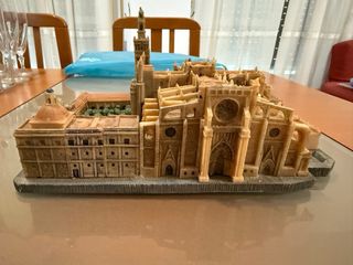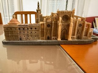 Réplica detallada de la Catedral de Sevilla. - Arquitectura gótica fiel al original. - Base gris texturizada.