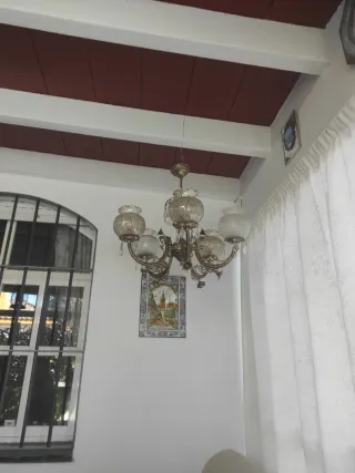 Elegante lámpara de techo de estilo antiguo, con un diseño clásico que aporta un toque de distinción a cualquier espacio. Su estructura metálica y los detalles ornamentales la convierten en una pieza decorativa. - Diseño clásico y ornamentado. - Estructura metálica. - Apta para interiores.