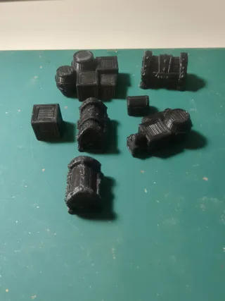 Conjunto de escenografía impresa en PLA, ideal para juegos de miniaturas. - Variedad de cajas, cofres y barriles. - Diseño detallado para ambientación. - Material PLA resistente. Mordheim Frostgrave Dungeons and dragons Mesbg ESDLA Mazmorras Loot Escenografía Warhammer