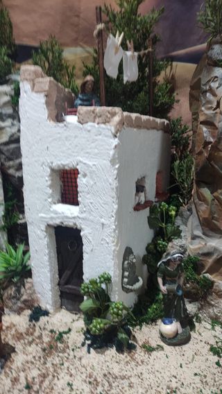 Casita para belén o Navidad, ideal para crear tu propio pesebre. - Estructura de casa con puerta y ventana. - Arco de piedra adyacente. - Base decorada con vegetación. PRIMER PREMIO de la Asociación de belenistas de Elche en la categoría de belenes populares 2024. Casas artesanales HECHAS A MANO para Belenes, de distintas formas, tamaños y motivos. Material: cartón y corcho de poliestireno. Para figuras de tamaño máximo 13 cm. Tengo disponibles 14 casas diferentes, visita mi perfil.